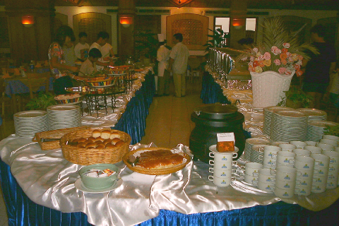 レストラン中央に並んでいるビュフェ風景